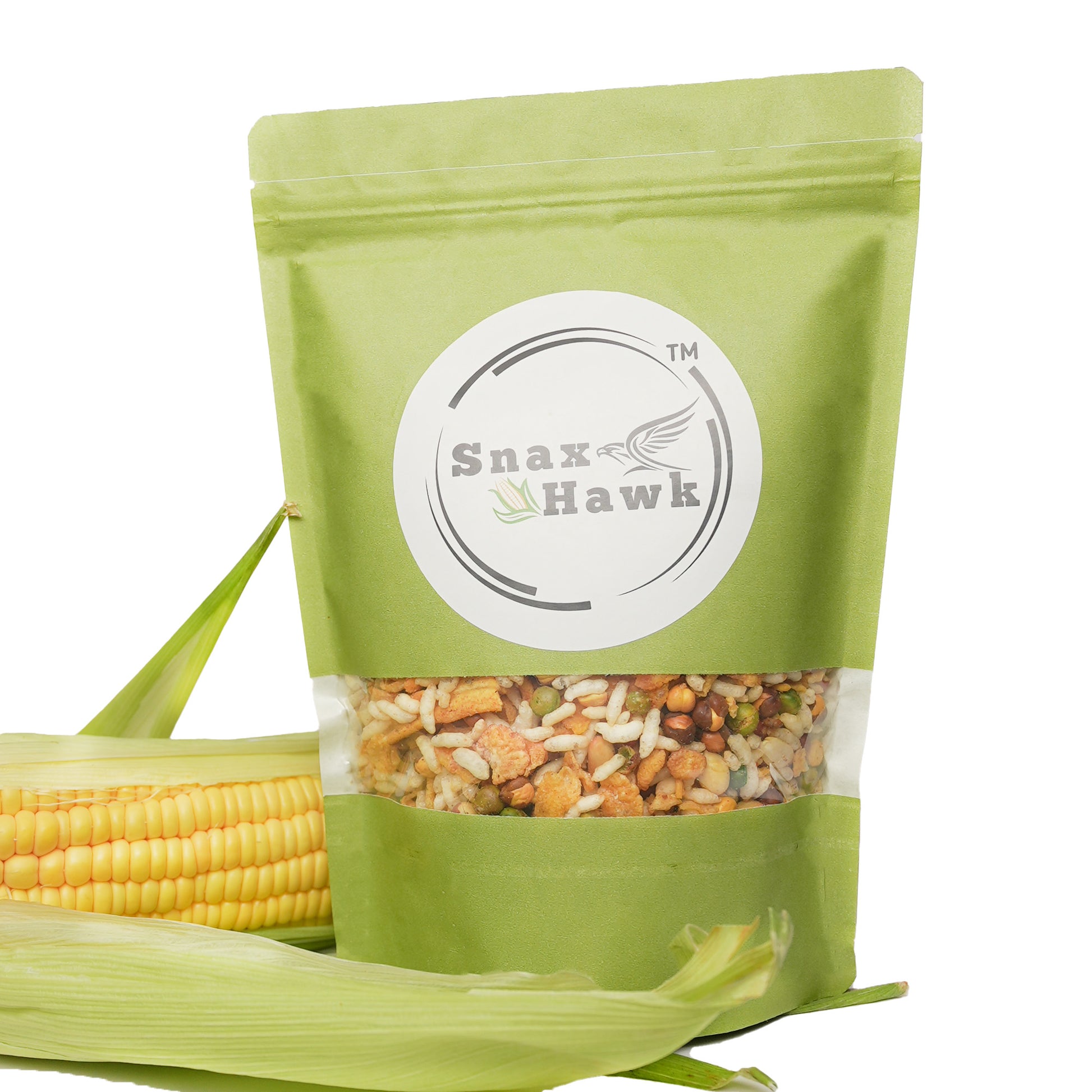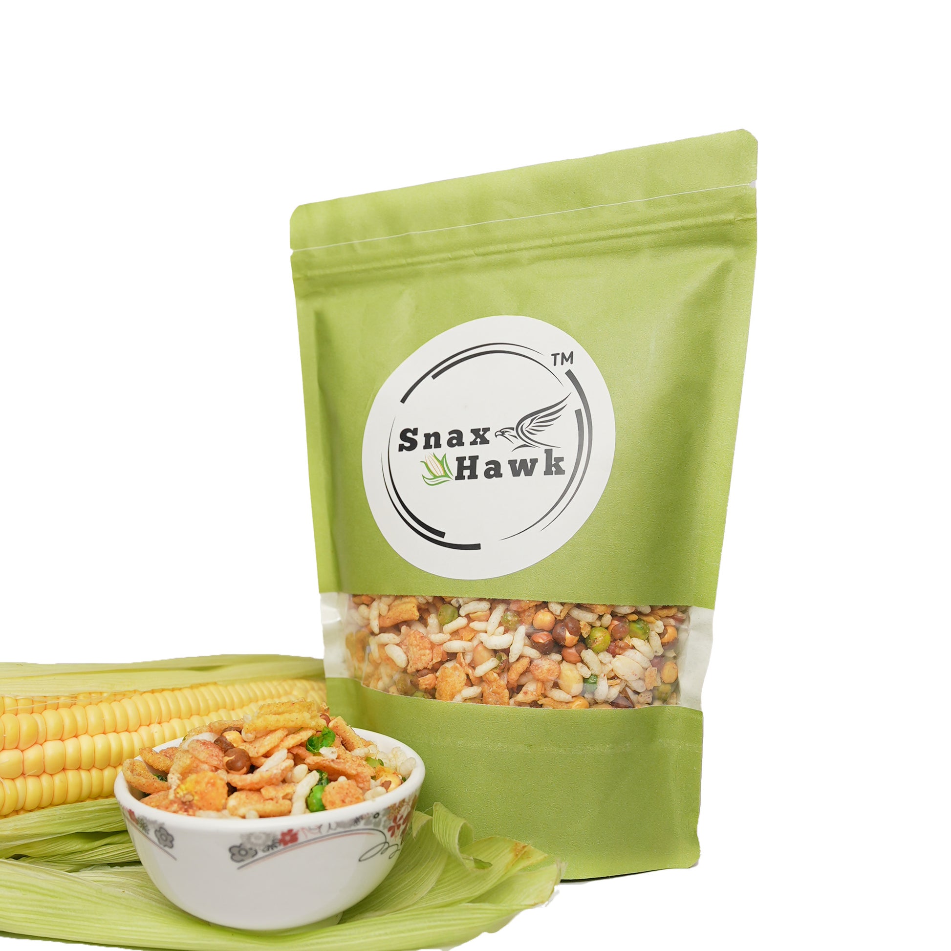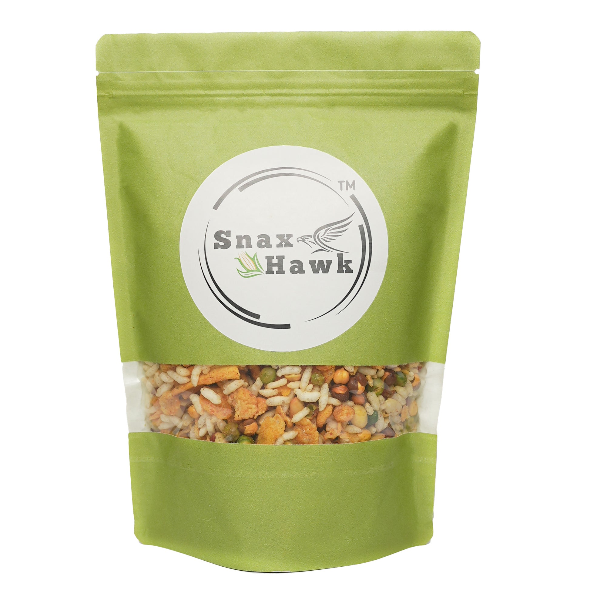 Delightful mix of Puffed rice (Bhel) , Bhuna (roasted) chana, Chana dal, Chinia Badam (peanuts), Dal moth namkeen, Flattened Corn flakes and special spices. Loaded with healthy protein, it can be enjoyed as it is or with freshly chopped onions, tomatoes with a lemony tangy punch.